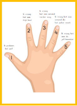 - Met "de hand van vijf" als hulpmiddel proberen kinderen uitdagingen zelf op te lossen of samen met een klasgenoot.